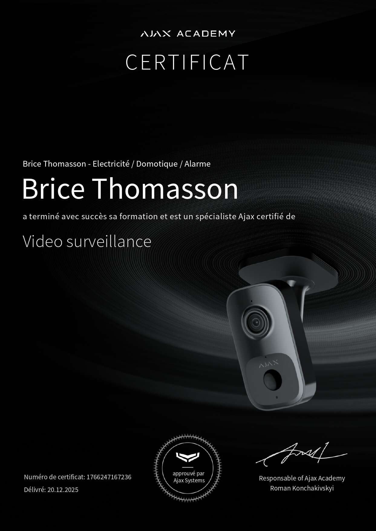 Ajax propose une gamme de vidéosurveillance professionnelle avec détection intelligente . Nous sommes certifiés partenaire Ajax dans le secteur de Bréhal pour installer les gammes Superior et Fibra (filaire NFA2P).